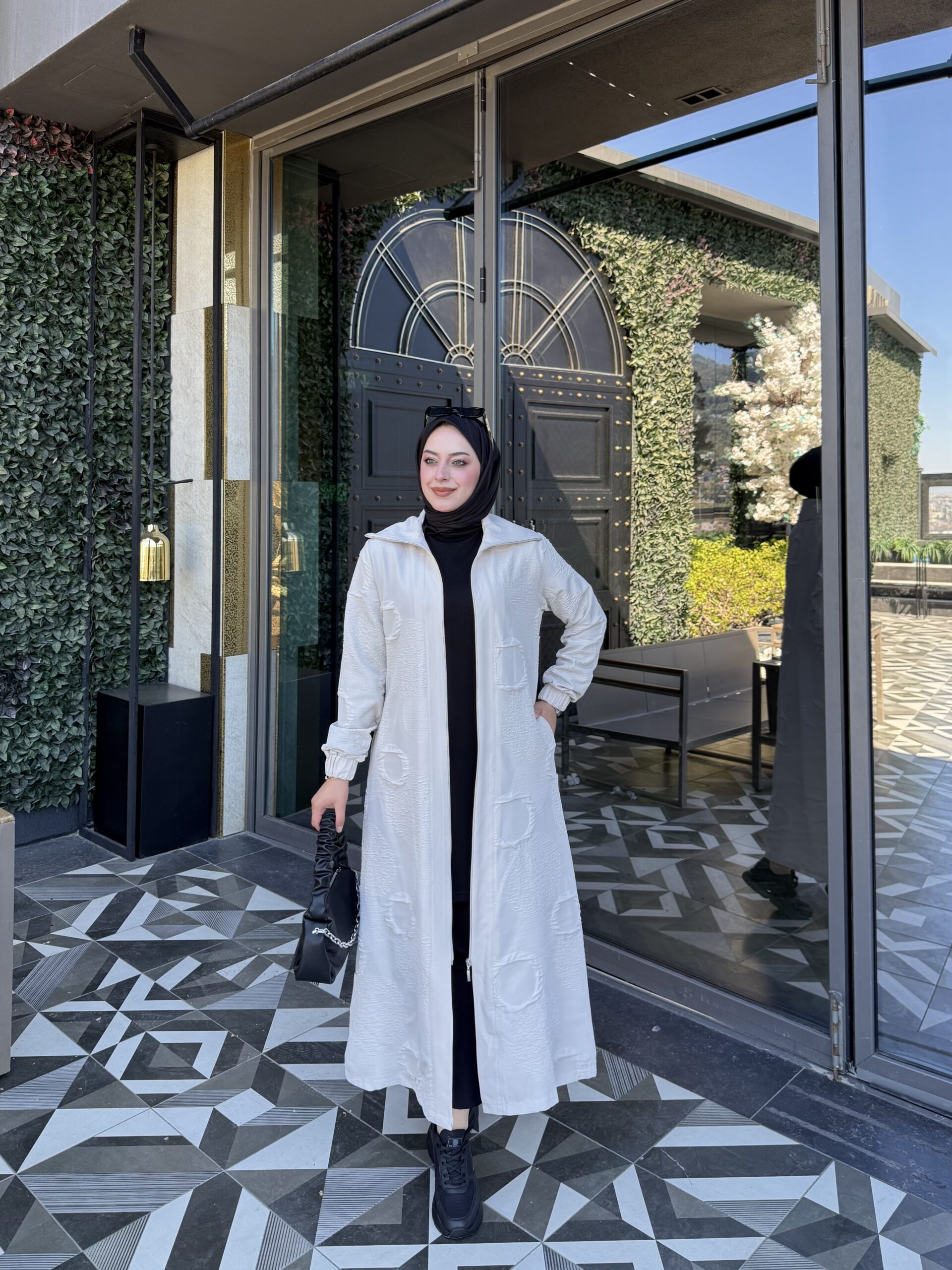 Modern ve zarif bir duruş arayanlar için tasarlanan Gofre Burçin Kap, her kombine sofistike bir hava katar. 135 cm uzunluğu ve gofre torba dokuma dokusuyla gün boyu konfor sağlarken şıklığından ödün vermez.