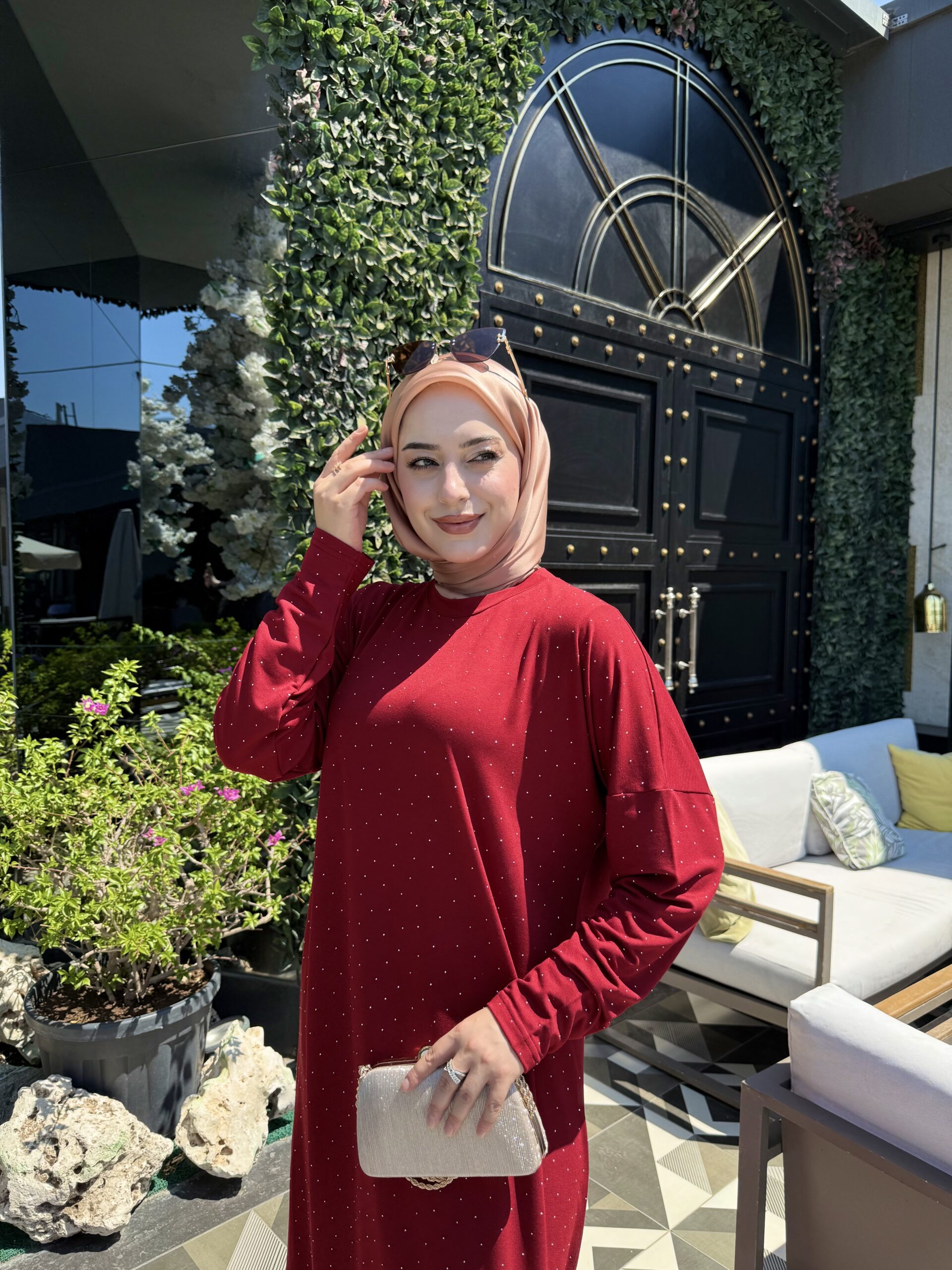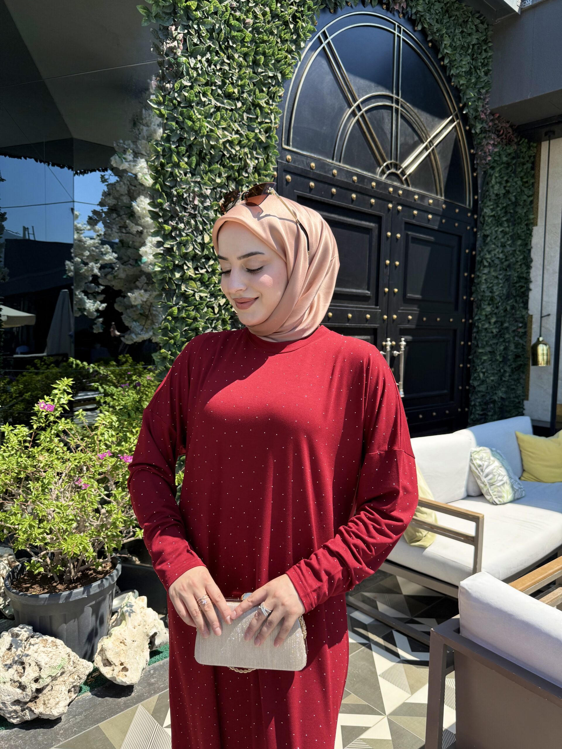 Yumuşak dokulu ipek viskon penye kumaşıyla üretilen Işıltı Elbise, zarif ve rahat bir tasarım sunar. Üst boy: 140 cm. Bordo rengiyle her ortama uyum sağlar, şıklığınızı tamamlar.