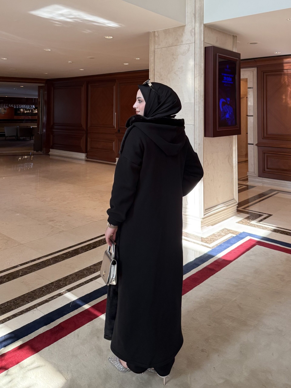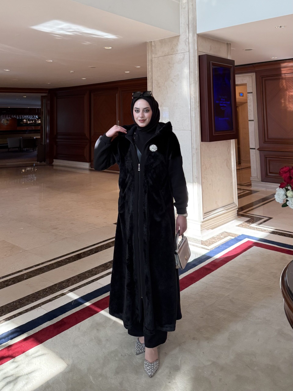 Ön kısmındaki taşlı broş detayıyla zarafeti ön plana çıkaran Siena Kap, rahatlığı ve şıklığı bir arada sunar. Arka ve kollarında kullanılan 3 iplik şardonlu kumaş sıcak tutarken, ön kısmındaki peluş kürk dokusu lüks bir görünüm kazandırır. 135 cm uzunluğuyla vücuda zarif bir duruş verir.